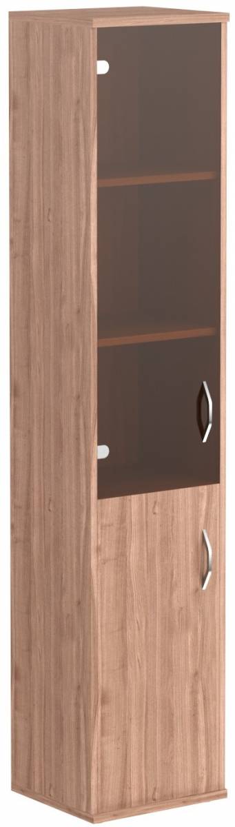 Шкаф колонка с малой глухой и стеклянной дверьми СУ-1.4(R) Ясень Шимо 406*365*1975